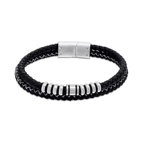 Joseph & George Black Leather and Stainless Steel Bracelet - A3444