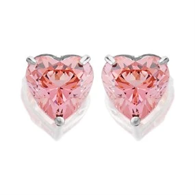 9ct White Gold Pink Cubic Zirconia Heart Stud Earrings - 6mm - G3134