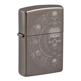 Zippo Tumbled Brass Ace Of Skulls Lighter - A26111