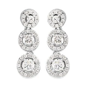 Silver Cubic Zirconia Halo Trilogy Drop Earrings - 19mm drop - F1226 Matching Item Available Matching Item Available