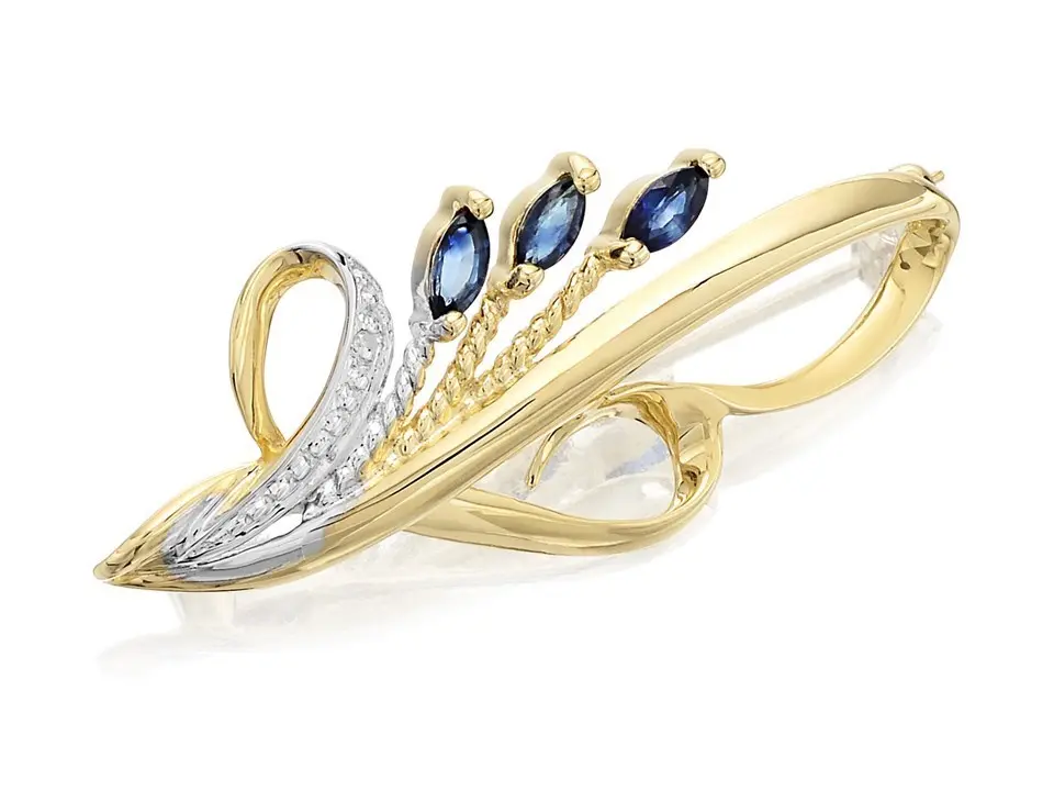 9ct Gold Diamond And Sapphire Brooch - D9595