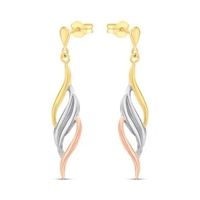 Reduced 9ct Gold Three Colour Flame Drop Earrings - 35mm drop - G4815
