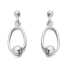 Silver Oval Loop Moving Bead Earrings - 18mm drop - F1063