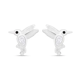 Silver Cubic Zirconia Hummingbird Stud Earrings - F04206