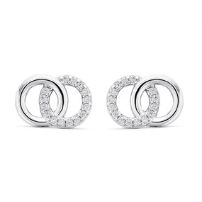 Silver Cubic Zirconia Circle Stud Earrings - 13mm - F04130