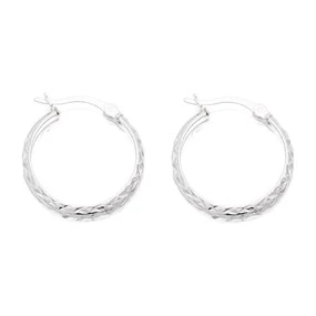 Silver Diamond Cut Hoop Earrings - 20mm - F13002