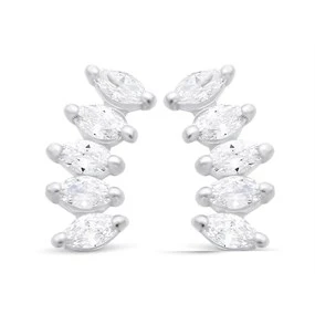 Silver Cubic Zirconia Climber Stud Earrings - 14mm - F11011