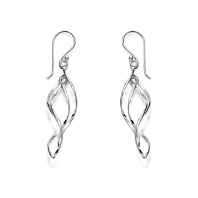 Silver Twisted Spiral Hook Wire Earrings - 50mm drop - F0537