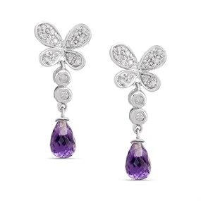 Star Buy 9ct White Gold Amethyst And Diamond Butterfly Drop Earrings - D9694