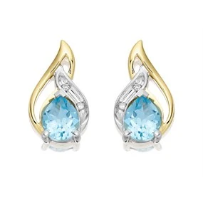 9ct Gold Two Colour Diamond And Blue Topaz Stud Earrings - G0651 Matching Item Available Matching Item Available