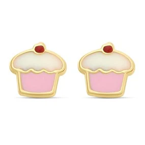 9ct Gold Enamel Cupcake Stud Earrings - 6mm - G0824