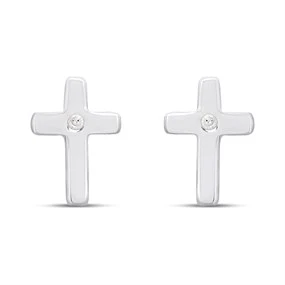 Silver Diamond Cross Stud Earrings- 7mm - F04240