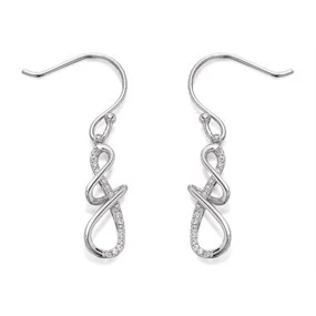 Silver Cubic Zirconia Double Twist Hook Wire Earrings - 32mm drop - F0845