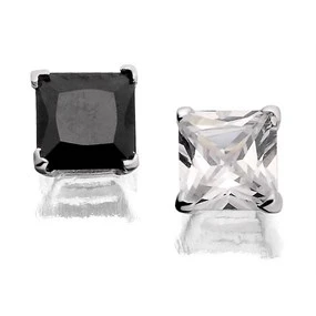 Silver 7mm Black Cubic Zirconia Square Stud Earrings - F0384