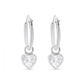 Silver Cubic Zirconia Heart Dropper Hoop Earrings - 12mm - F13003