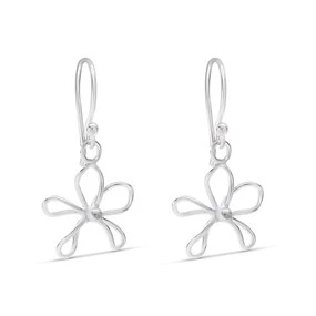 Silver Flower Hook Wire Earrings - 25mm drop - F05012