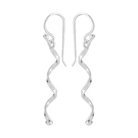 Silver Twist Hook Wire Earrings - 42mm drop - F05107