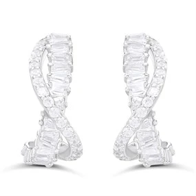 Silver CZ Mixed Cut Crossover Hoop Earrings- 14mm - F13158