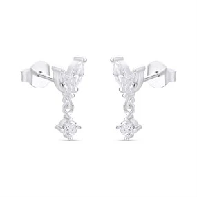 Silver Marquise C.Z. Drop Earrings - 15mm - F11036