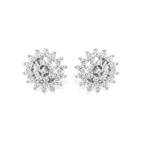 Silver Cubic Zirconia Cluster Stud Earrings - 10mm - F04145