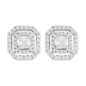 Silver Cubic Zirconia Halo Stud Earrings - 11mm - F04184