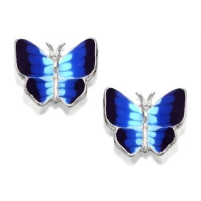 Silver Blue Butterfly Stud Earrings - 9mm - F0399