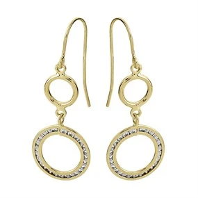 Star Buy 9ct Gold Cubic Zirconia Circle Hook Wire Earrings - 32mm drop - G2884 Matching Item Available Matching Item Available