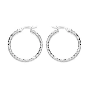 Star Buy 9ct White Gold Patterned Hoop Earrings - 24mm - G41159