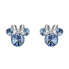 Disney Silver Minnie Blue Crystal Birthstone Stud Earrings - December - F6786