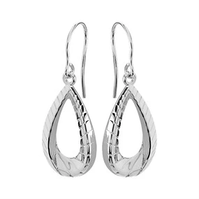 9ct White Gold Textured Hook Wire Earrings - 37mm drop - G1495