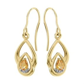 9ct Gold Citrine And Diamond Hook Wire Earrings - 28mm drop - G1840