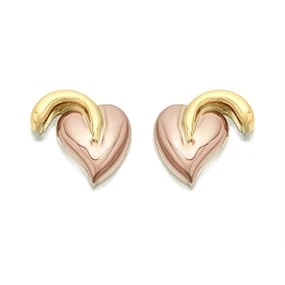 9ct Gold Two Colour Open Heart Stud Earrings - 8mm - G0143