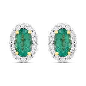 9ct Oval Emerald And Diamond Cluster Stud Ring - D96119 Matching Item Available Matching Item Available