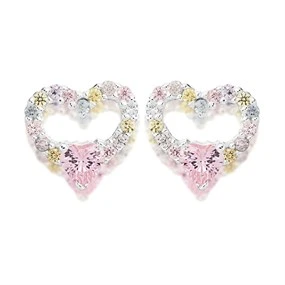Silver Mystic Crystal Heart Stud Earrings - 5mm - F04198
