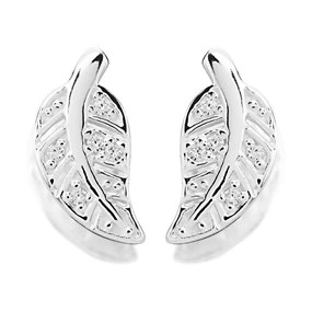 Silver Cubic Zirconia Leaf Stud Earrings - 8mm - F04055