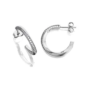 Silver Cubic Zirconia Twisted Hoop Earrings - 20mm - F13105