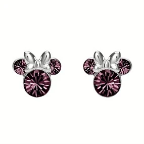 Disney Silver Minnie Purple Crystal Birthstone Stud Earrings - February - F6776