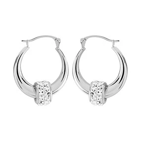 Reduced 9ct White Gold Crystal Creole Hoop Earrings - 18mm - G41123