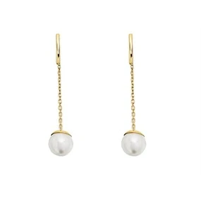 Reduced 9ct Gold Freshwater Pearl Chain Drop Earrings - 37mm drop - G1452