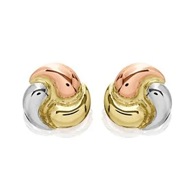 9ct Gold Three Colour Round Stud Earrings - 7mm - G4640
