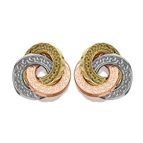 9ct Gold Two Colour Flame Stud Earrings - 11mm - G0164