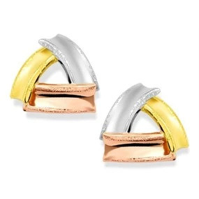 9ct Three Colour Gold Knot Stud Earrings - 8mm - G4635