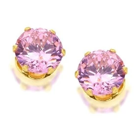 9ct Gold Pink Cubic Zirconia Solitaire Stud Earrings - 5mm - G2781