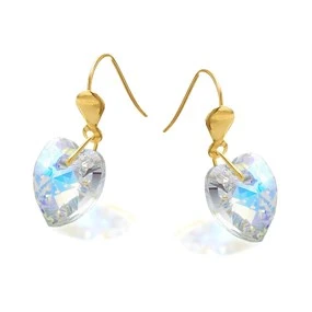 9ct Gold Crystal Heart Hook Wire Earrings - 10mm - G1176