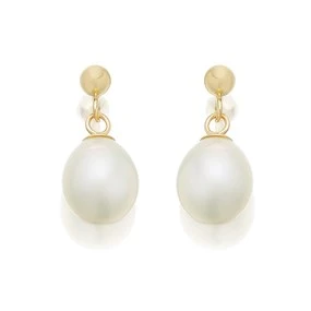 9ct Gold Freshwater Cultured Pearl Drop Earrings - 15mm drop - G1423