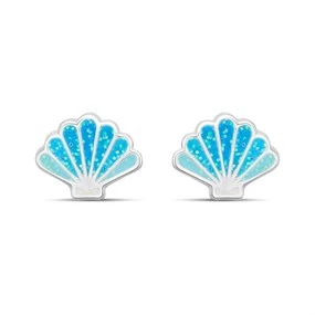 Silver Enamel Blue Shell Stud Earrings- 8mm - F0160