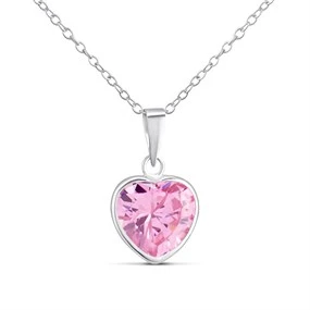 Silver Pink Cubic Zirconia Heart Pendant- 10mm - F33107