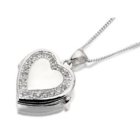 Silver Cubic Zirconia Heart Locket - F4320