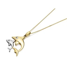 Save 9ct Gold Two Colour Cubic Zirconia Dolphin Necklace - R8749