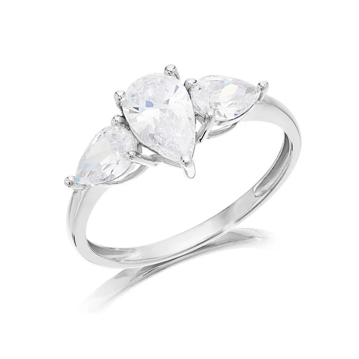 9ct White Gold Cubic Zirconia Trilogy Ring - R6559